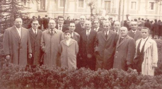 La Cofradía en 1958, en la que se puede apreciar en el medio, con pajarita a Paco Pérez Herrero.